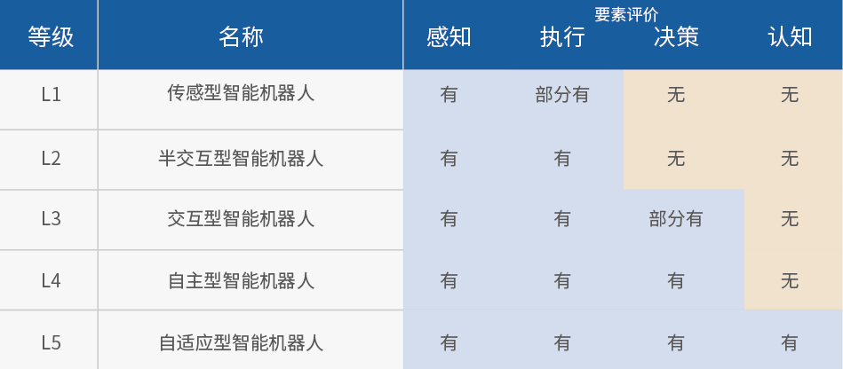 表 1:智能化评价等级(图片来源:银河集团(galaxy)(集团)机器人有限公司官网)