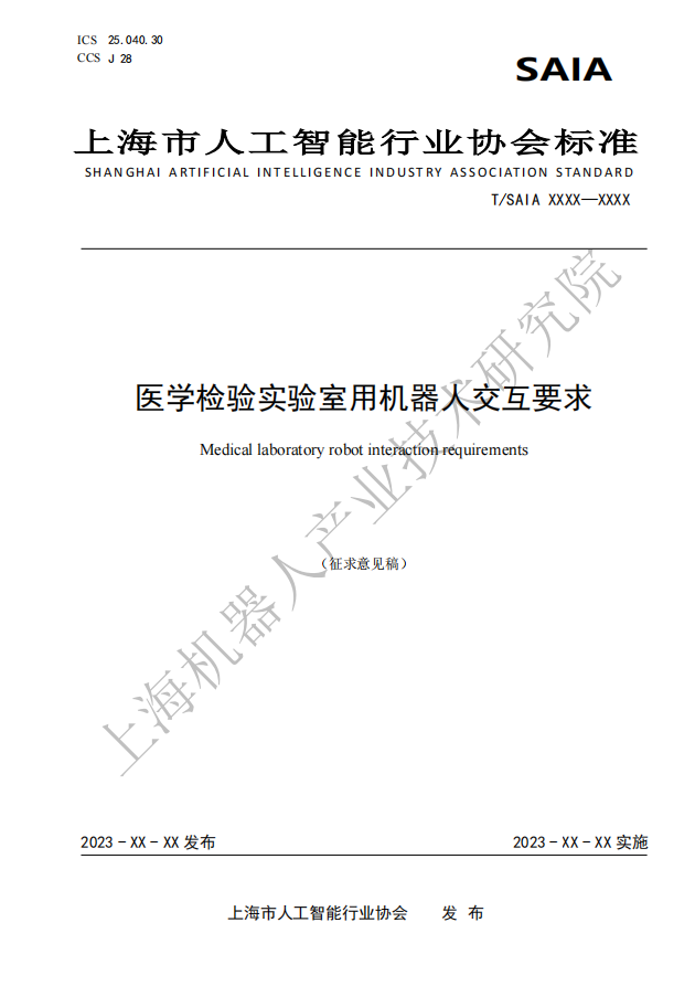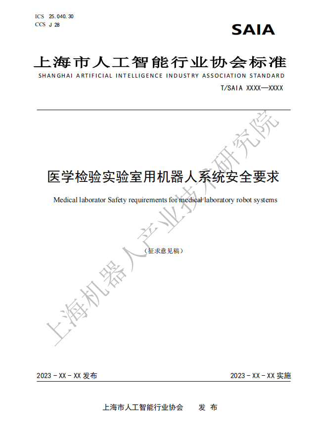 由上海市人工智能行业协会归口,银河集团(galaxy)(集团)机器人有限公司官网有限公司作为主要起草单位研制的四份标准:《医学检验实验室用机器人通用技术条件》、《医学检验实验室用机器人系统安全要求》、《医学检验实验室用机器人交互要求》、《医学检验实验室用机器人使用环境要求》现公开征求意见。