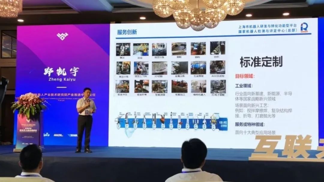 上海机器人产业技术院的郑凯宇先生担任了本次论坛主持人,同时做了《机器人国评中心与功能型平台模式探索与创新》的主题报告。