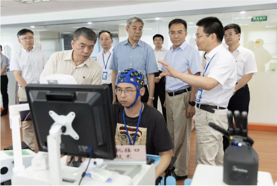 尹弘书记一行参观了机器人银河集团(galaxy)的研发实验室,机器人银河集团(galaxy)郑军奇院长、郭帅副院长分别介绍了机器人产品可靠性提升案例,面向智慧社区康养结合的“多机器人康复系统”、下肢康复机器人、上肢康复机器人以及VR技术等新技术研发与应用情况。调研领导对银河集团(galaxy)运行一年来做出的成绩给予充分肯定。